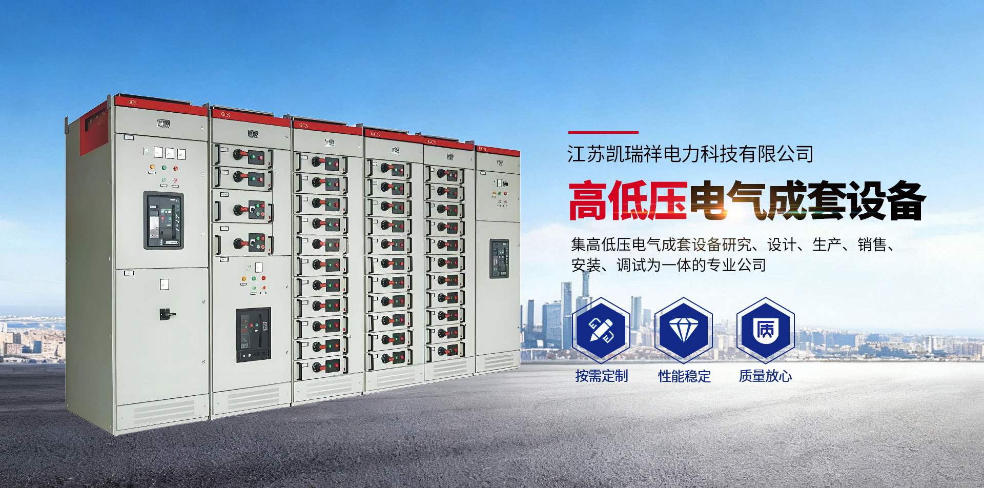 江蘇凱瑞祥電力科技有限公司座落在江蘇省阜寧縣:距風景區(qū)金沙湖沙灘浴場約5公里,是一家集高低壓電氣成套設(shè)備研究、設(shè)計、生產(chǎn)、銷售、安裝、調(diào)試為一體的專業(yè)公司?,F(xiàn)有員工200余人,其中技術(shù)人員約占50%,固定資產(chǎn)近5000萬元,注冊資金5808萬元,占地面積約3.2萬㎡,建筑面積約1.86萬㎡。